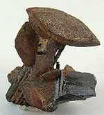 Vanadinite and the green crust outside is Mottramite on Quartz